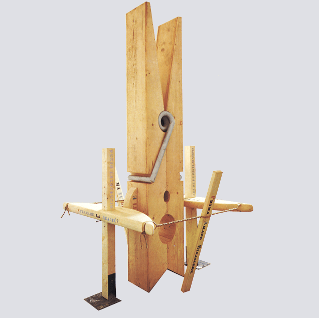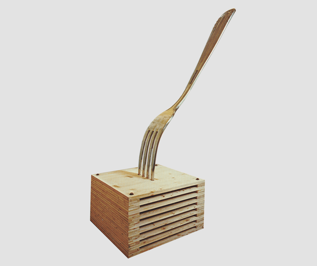 il gioco epistemologico di Magritte, che inseriva una proposizione simile in un disegno raffigurante una pipa, viene qui confermato anche senza il ricorso problematizzante della sua rappresentazione; in questo caso la conseguenza del confronto tra realtà e opera d’arte è diretta, ponderale, quantitativa, non “formale”: si può ancora chiamare forchetta questa “cosa” lunga un paio di metri e pesante più di un quintale?